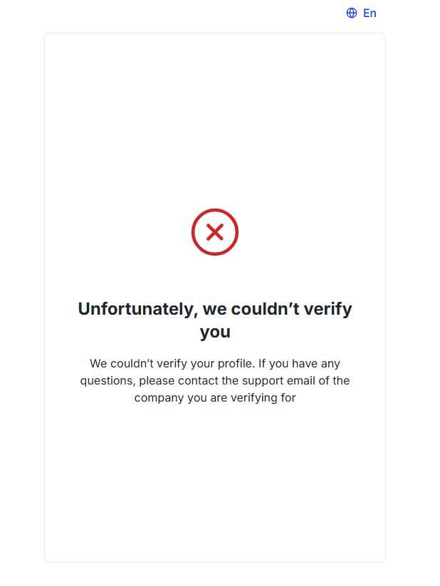 During verification, the following message may appear: “Unfortunately, we couldn’t verify you.”